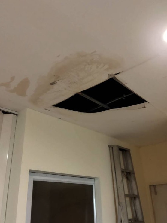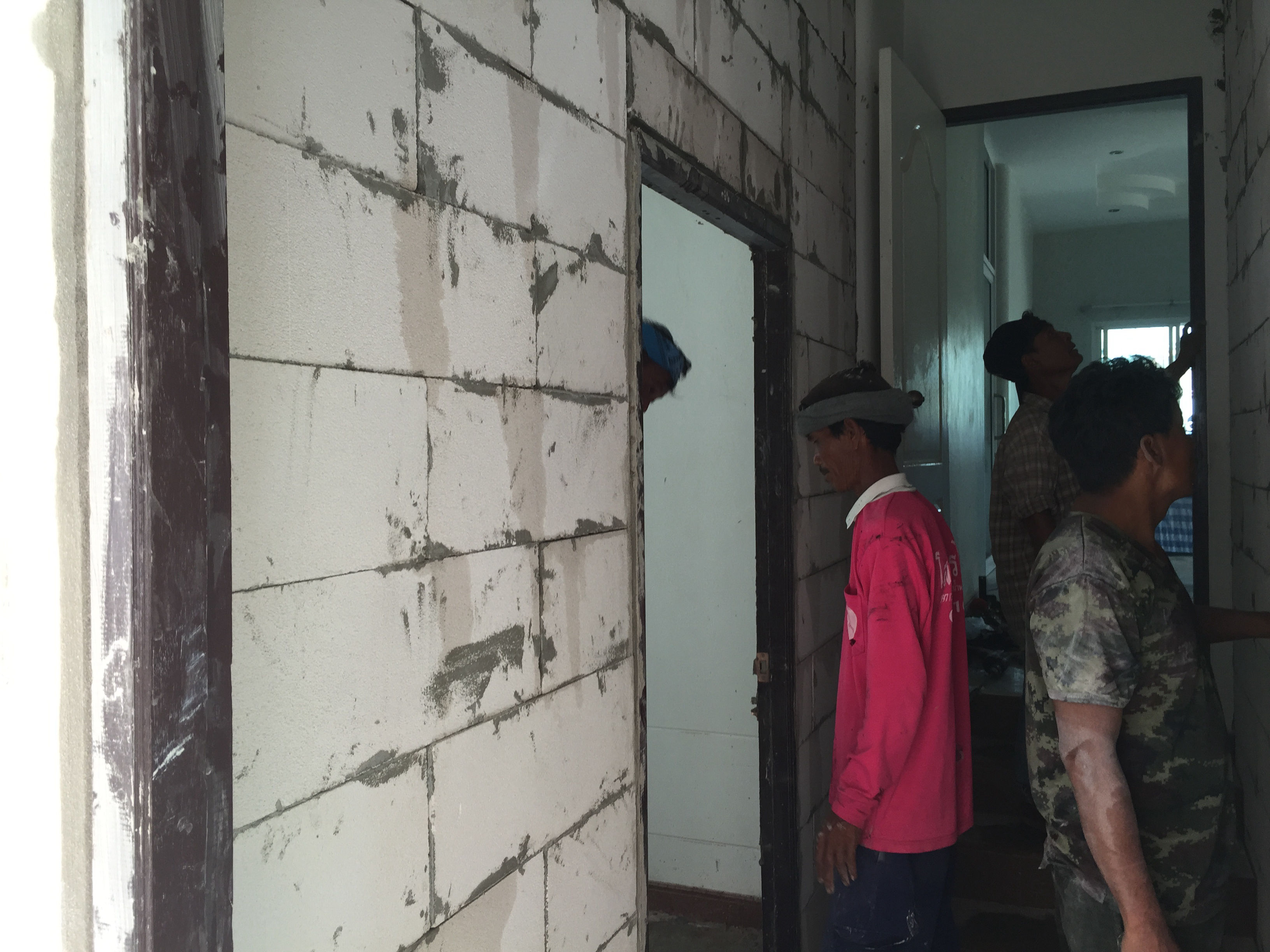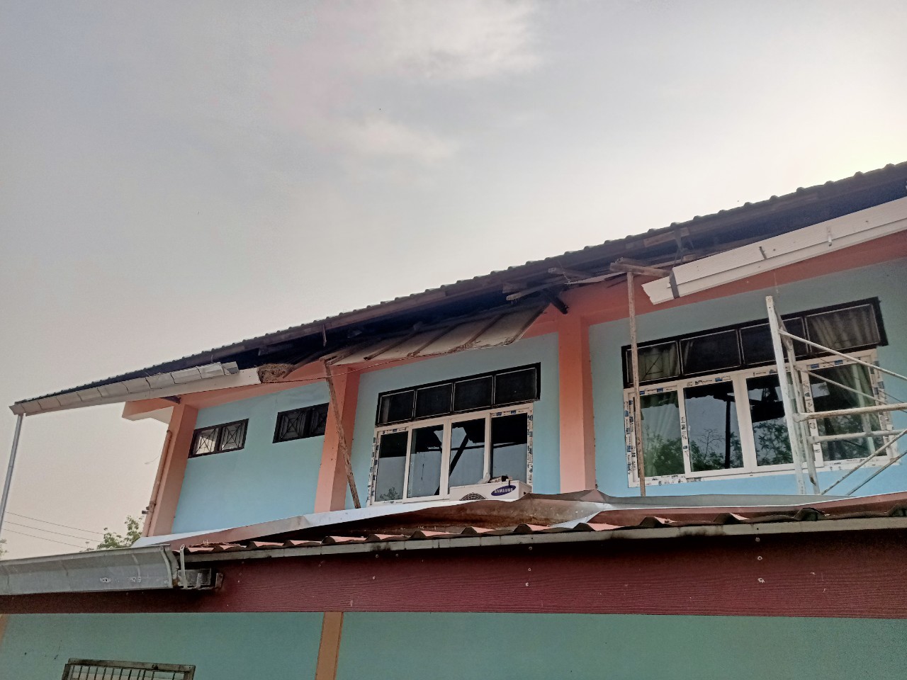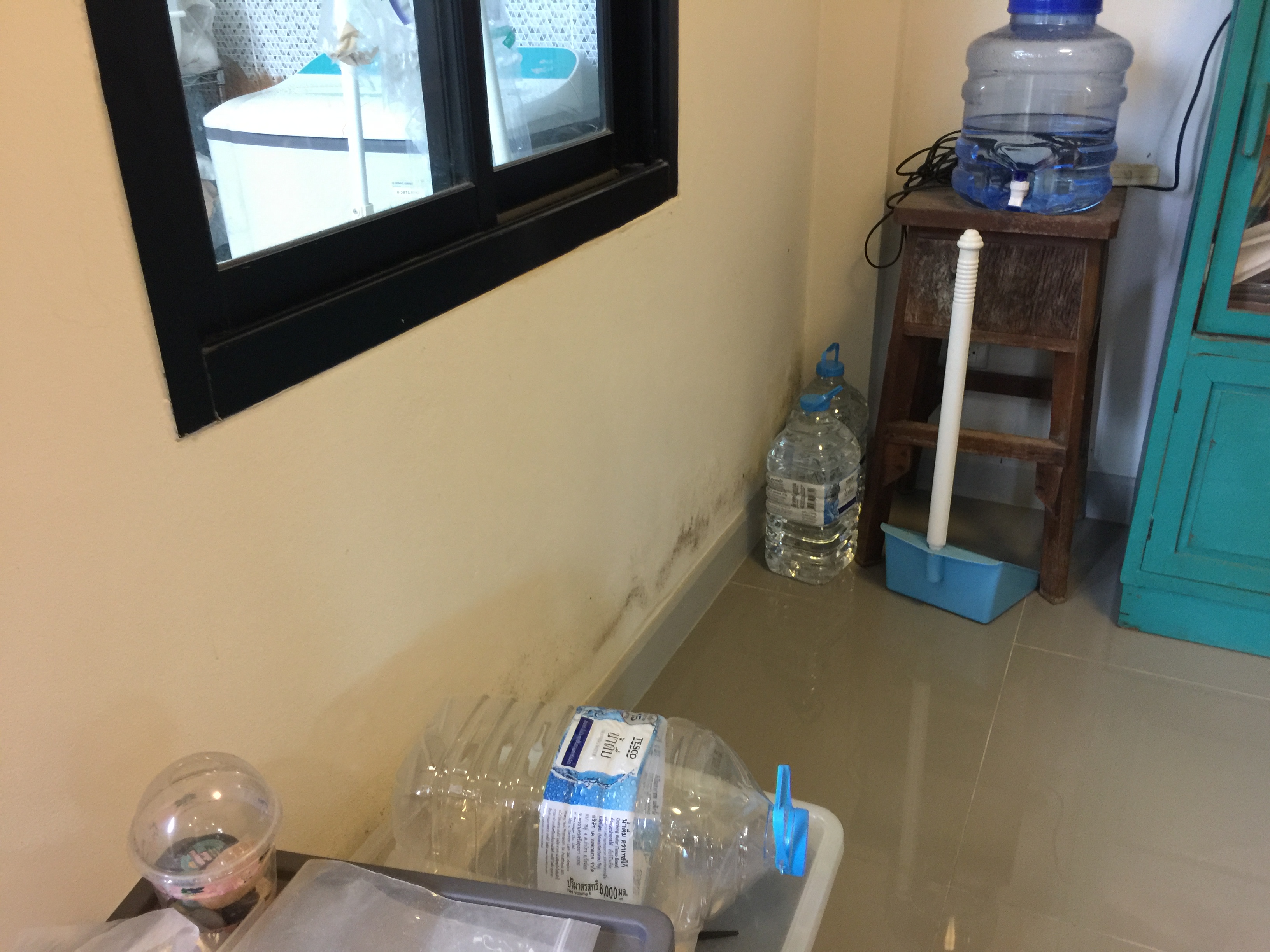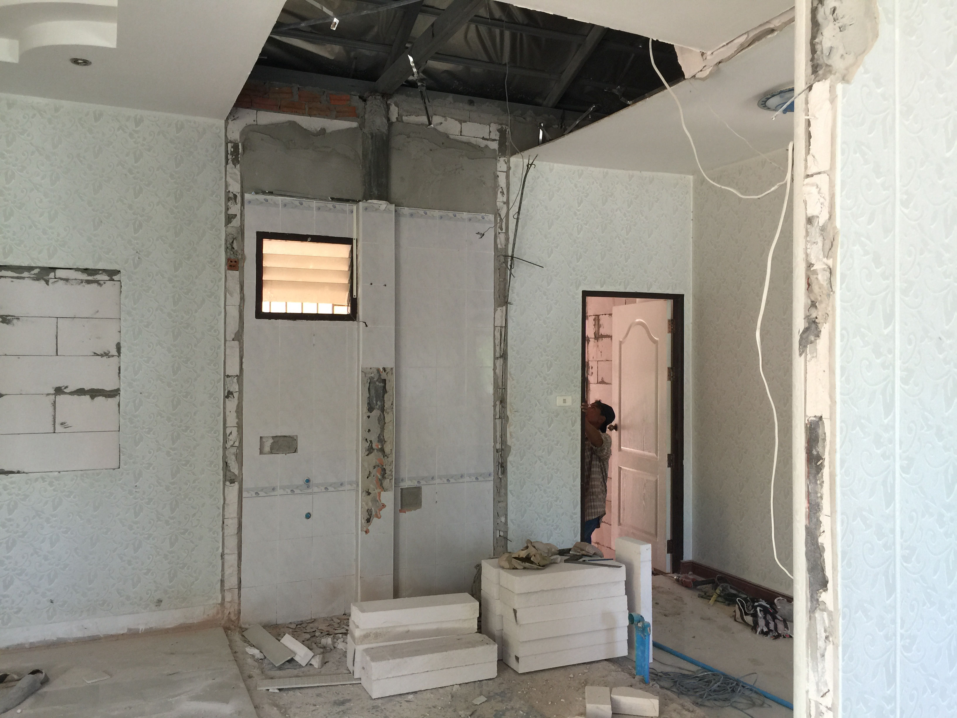 หลังคากระเบื้องแตกร้าว น้ำซึมลงฝ้าเพดาน ฝ้ายิปซั่มชื้นมีเชื้อรา เพิ่มไฟส่องสว่าง เพิ่มปลั๊กไฟ กั้นผนังห้อง ติดตั้งบานประตู หน้าต่าง ทาสี